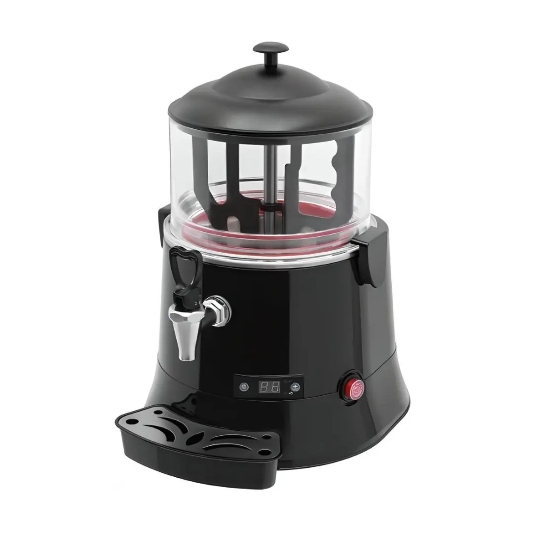 The Hot Chocolate Machine (Model: GRT-CH5L) is a high-efficiency commercial dispenser engineered for cafes, bakeries, and professional catering services. This unit combines a powerful 400W heating element with a dedicated 40W motor-driven stirring system to ensure constant movement, preventing chocolate from scorching or separating. Finished in a sleek, professional black, it serves as an attractive countertop centerpiece while providing reliable, continuous service for hot chocolate, melted dipping chocolate, or warm milk beverages.