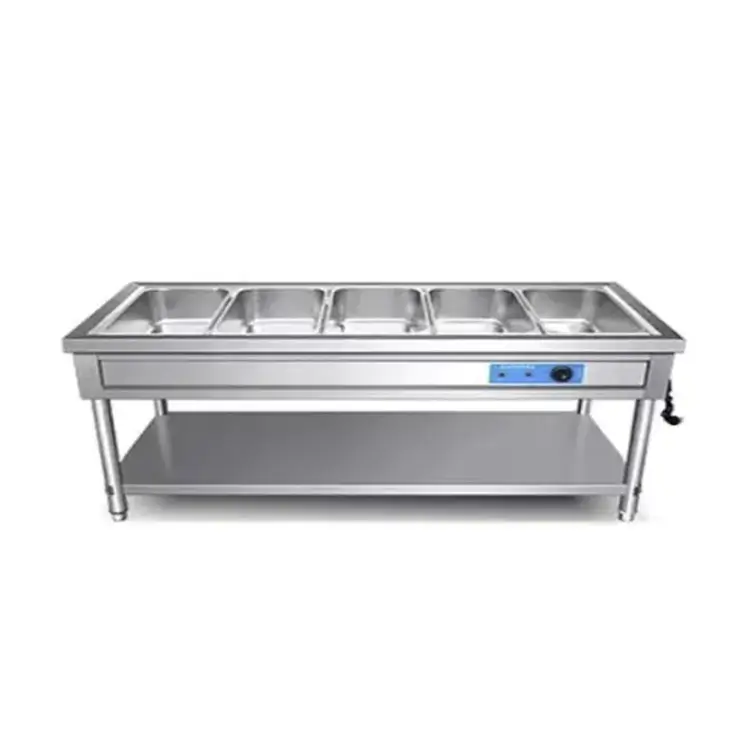 The Albasha 5-GN Stainless Steel Bain Marie is the ultimate professional heating station for high-capacity food service. Custom-made to support large-scale buffet lines and busy commercial kitchens, this unit features five full-size GN 1/1 containers within a robust AISI 304 18/10 stainless steel frame. Its expansive design and integrated storage solutions ensure that your culinary offerings remain at perfect serving temperatures while maximizing operational efficiency.